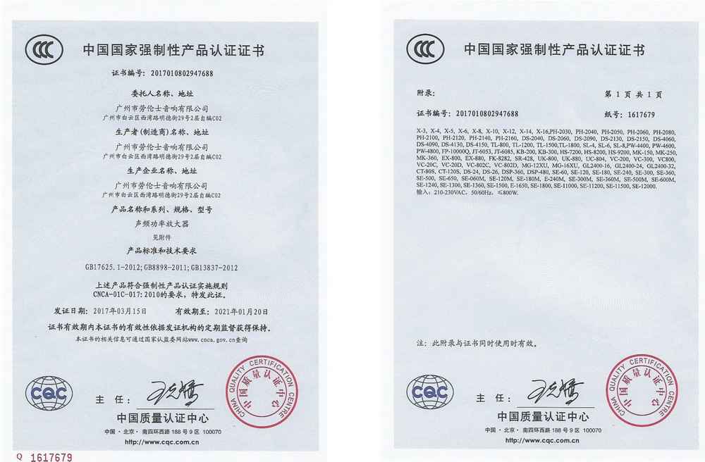 CCC产品质量认证证书