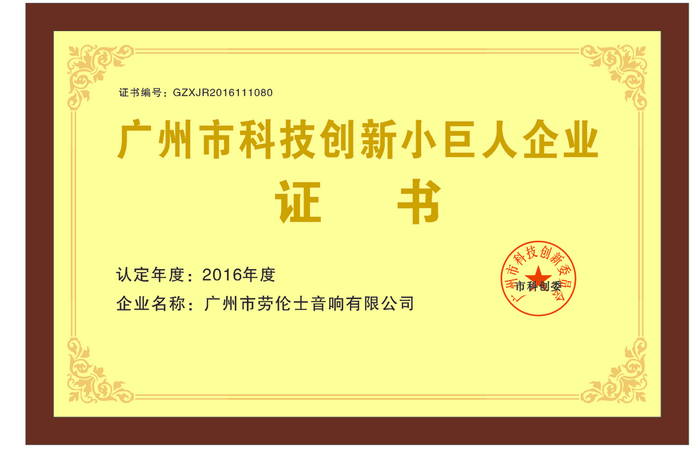 广州创新科技小巨人证书