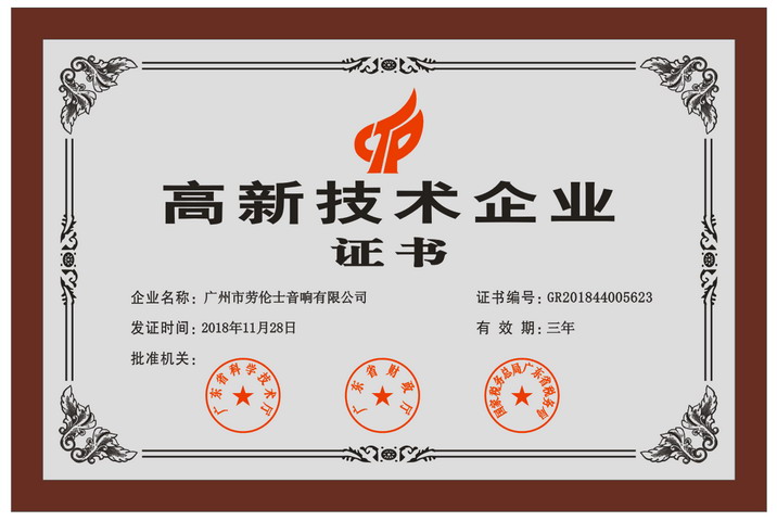 高新技术企业证书